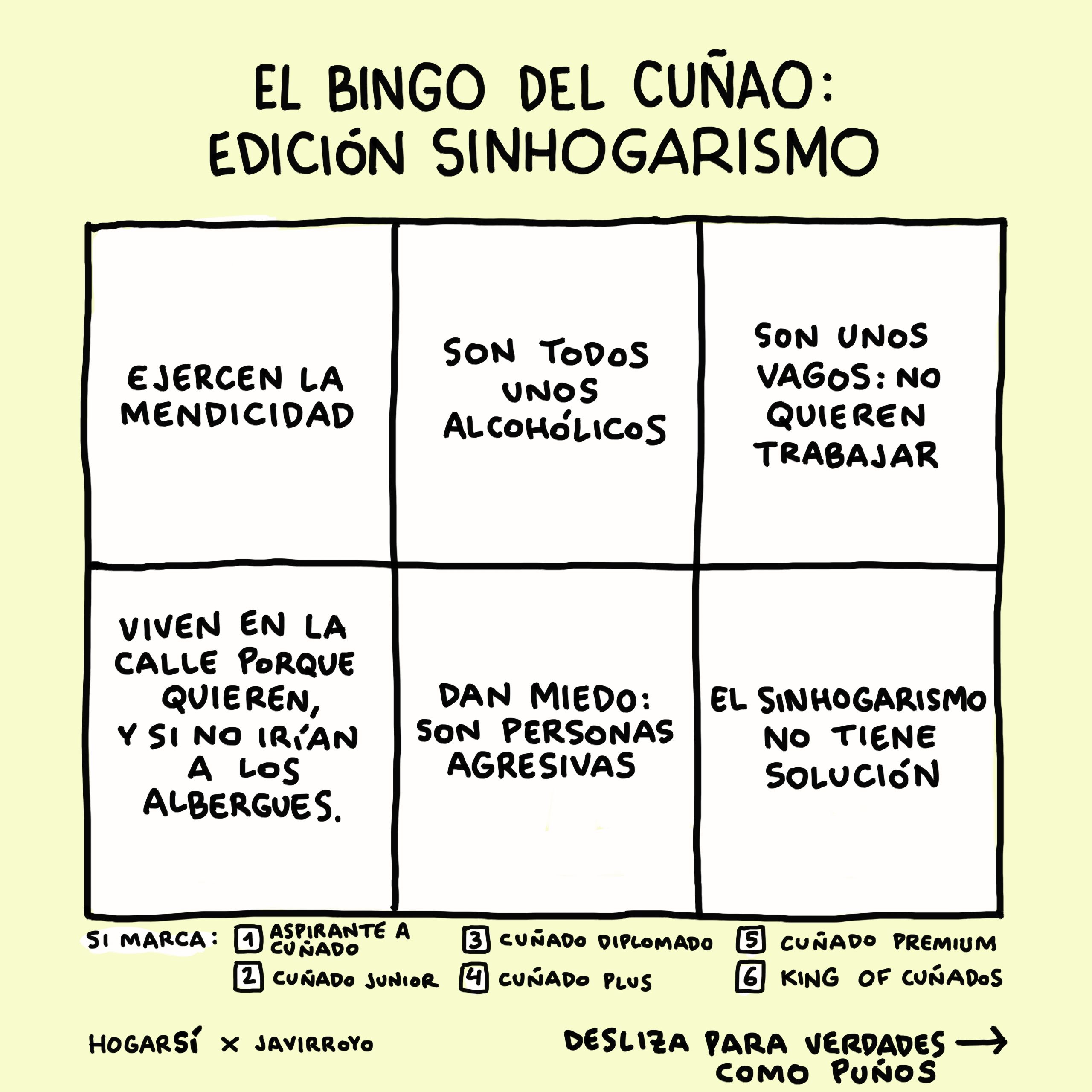 Como parte de nuestra campaña de Navidad, el ilustrador Javi Royo ha hecho posible El bingo del cuñado hablando del sinhogarismo. El bingo del cuñado trata sobre las fake news más extendidas que todos hemos escuchado en alguna comida o cena familiar. Con esta acción queremos desmontar los prejuicios que existen en nuestra sociedad en torno al sinhogarismo, que estigmatizan y...